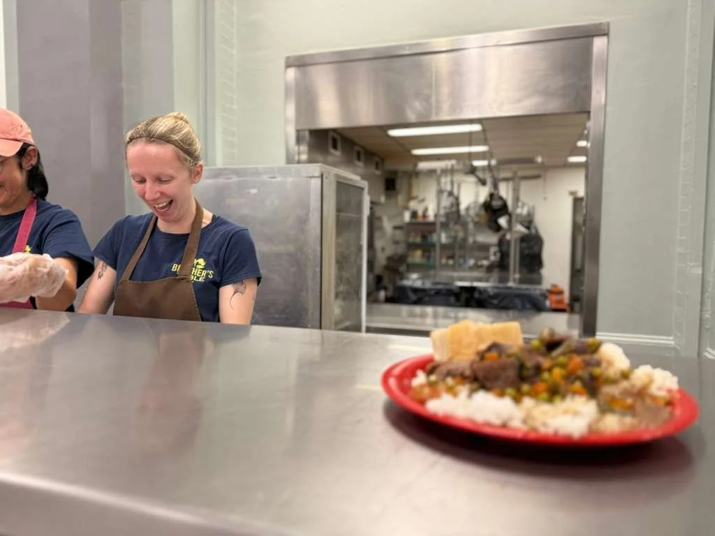A volunteer cook preparing dinner for walk-in clients at My Brother’s Table in Lynn, MA, which received funding from the United Response Fund (November 2025).